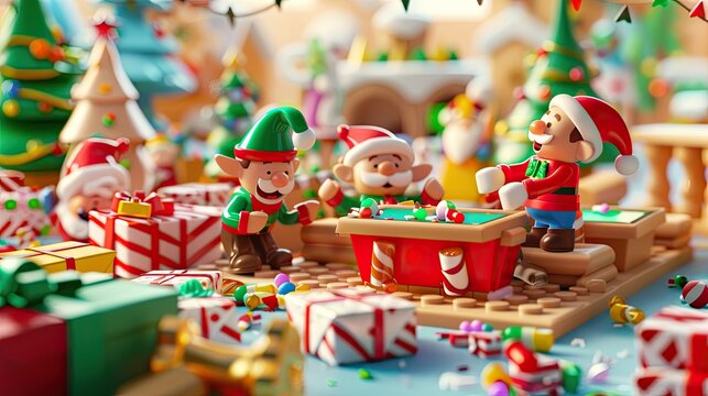 In Santa's North Pole workshop, cheerful elves create gifts for the magical Christmas night, bringing worldwide happiness.