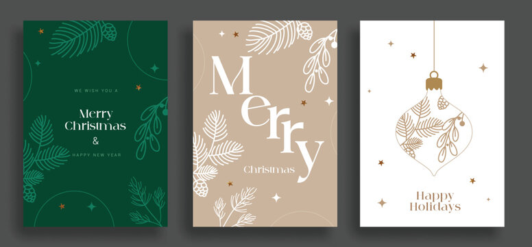 Christmas, Winter holiday graphic element set. Winter plants and berry with placeholder typography. Bundle elements of leaf, ornaments and text. Seasonal party invitation, greetings, corporate email