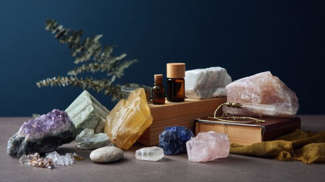 Crystals styled holistic lifestyle advertising product composition photography energy stones healing