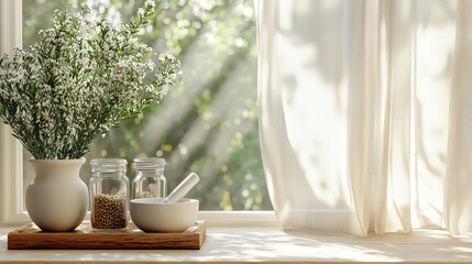 Minimal Zen Wellness Composition Organic Wooden Sphere and Powder Texture - Mindful Lifestyle Design, Sustainable Aesthetic for Holistic Living Spaces
