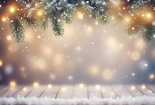 Christmas background for photography with snowflakes, ornaments and christmas trees