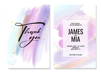 Holo gradient invitation, pastel blue violet pink vector watercolor ink, abstract poster, holograph thank you card