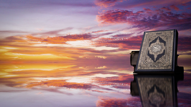 Koran - holy book of Muslims ( public item of all muslims )   with Twilight sky