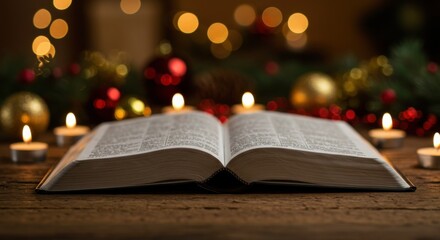 Shining Holy Bible - Ancient Book banner,  illuminated message, generative ai