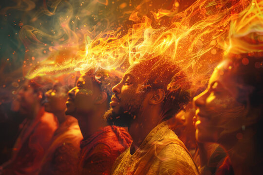 Flaming Tongues Descend Sceneeterangan, Pentecost a Christian holiday, the descent of the Holy Spirit.