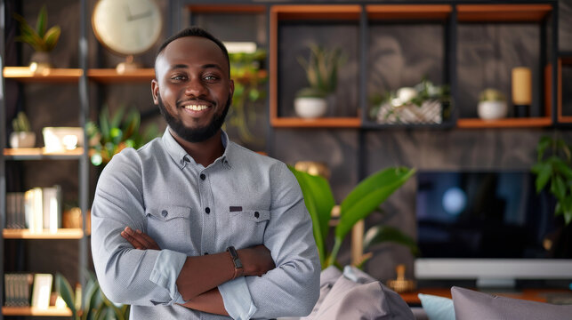 Man relaxing in new home after successful purchase