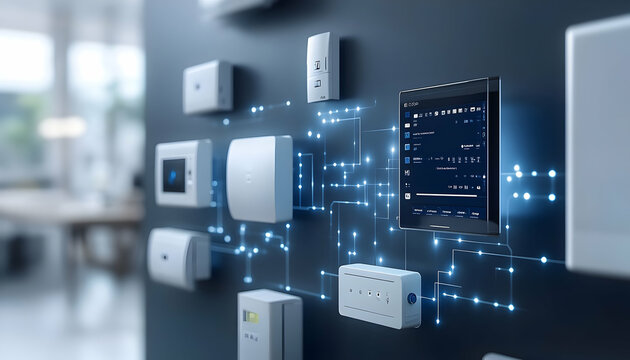 A person holding a tablet displaying a glowing digital house icon, representing technology, innovation, and smart home concepts.