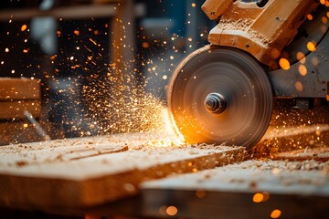 Mature construction worker cutting metal with circular hand saw