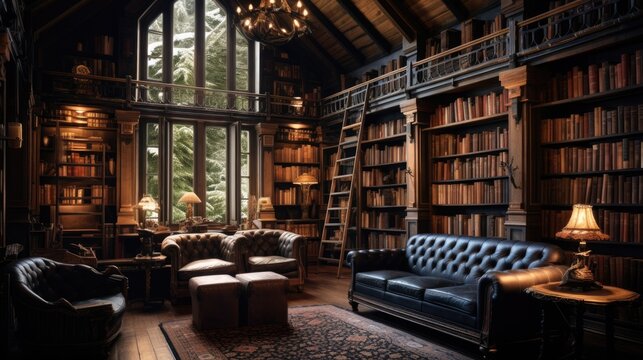 Cozy private library room with a comfortable sofa. Seamless 4K looping timelapse video animation background
