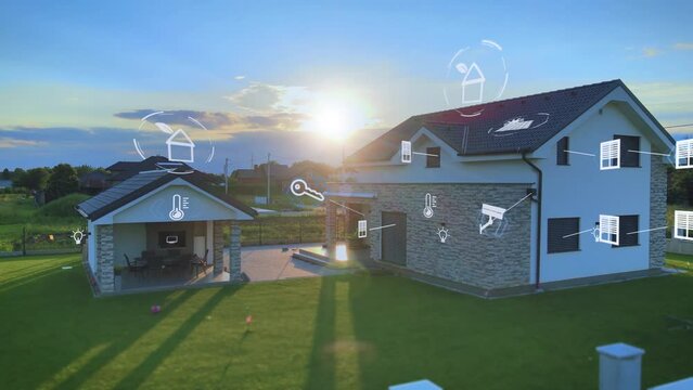 Smart home components connected via IoT Internet of things, modern Artificial intelligence powered smart home, Generative AI