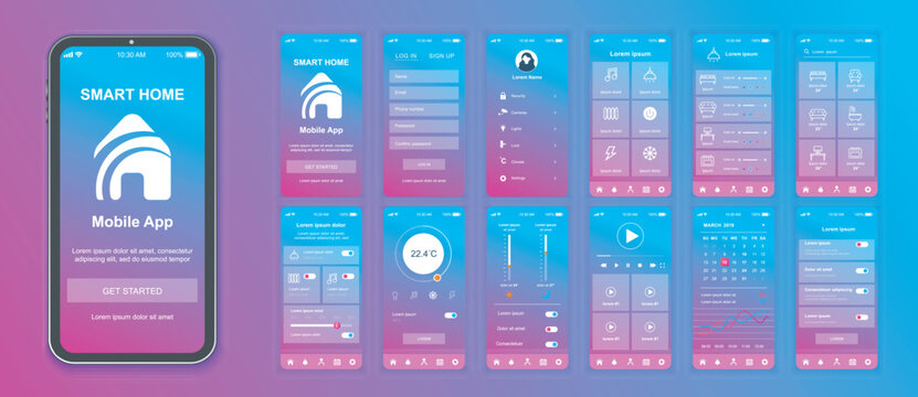 Vector set of abstract logo design templates in simple linear style - cozy home emblems, houses and plants  stay at home