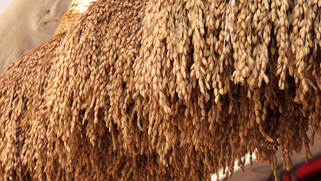 Traditional Indian home decoration with paddy sheaves