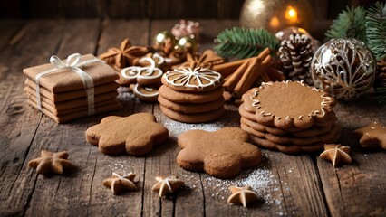 Cute cartoon vector of winter-themed homemade biscuits and gingerbread cookies on white background