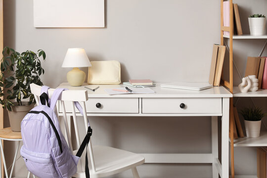 Lazy kid enthusiastically playing smartphone game instead homework, discipline