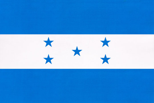 Honduras national fabric flag, textile background. Symbol of international world central America country.