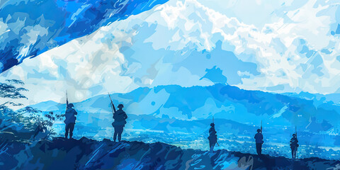 The Blue and White: The Flag of Honduras with Soldiers Standing Guard - Visualize the flag of Honduras with soldiers standing guard, symbolizing the country's commitment to peace