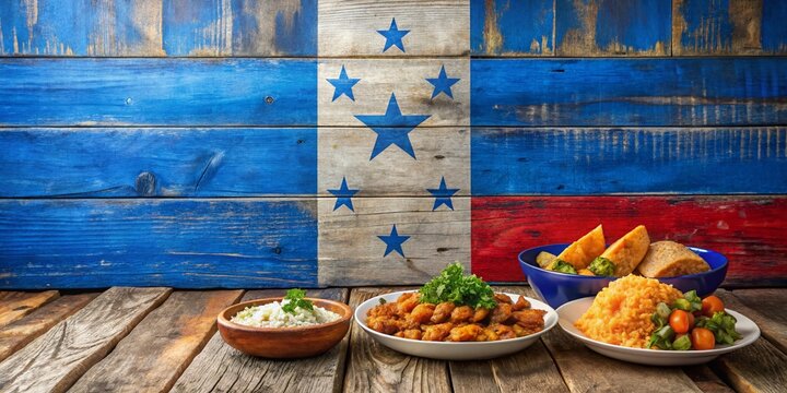 Honduran Flag Wooden Background Food Photography Stock Photo