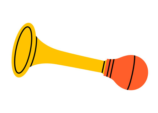 Hand drawn cute cartoon illustration of car retro klaxon. Danger alarm sound signal. Flat vector attention loud honk doodle. Warning trumpet icon. Alert noise. Vehicle siren buzzer. Isolated.