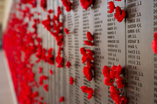 Close up of honor roll sash with black and white fabric and gold lettering detail
