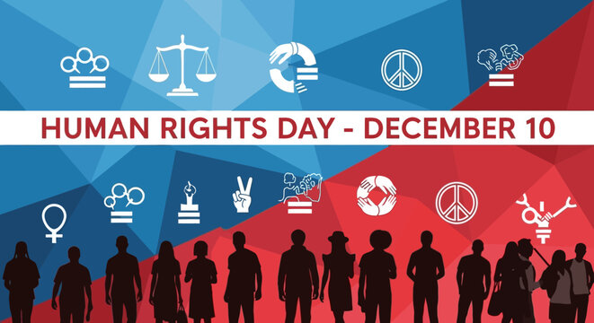 Human Rights Day December 10 Celebration with Symbols and People Silhouettes.