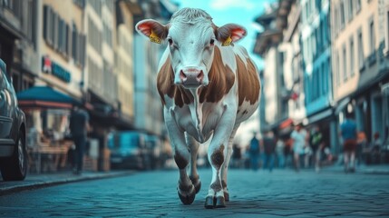 Image of a cow head on white background. Farm animals. Illustration, Generative AI.