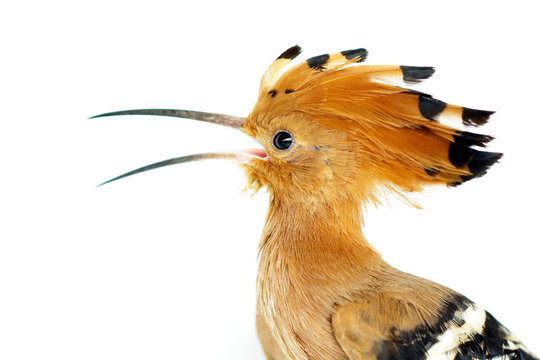 Image of hoopoe bird head on white background. Wild Animals.  Eurasian hoopoe (Upupa epops)