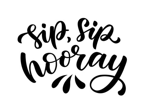 SIP SIP HOORAY. Celebration toast quote for birthday, graduation, wedding, happy new year, christmas, holiday. Cheers, sip sip hooray text. Pun quote Hip hip hooray Vector illustration