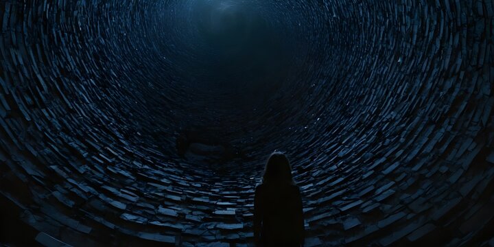 A character slowly sinking into a dark pit, symbolizing the isolation and hopelessness often associated with mental illness. minimal 2d animation Psychology art concept