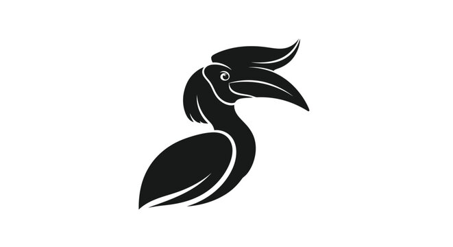 Elegant black hornbill bird head silhouette icon. Modern stylized avian logo design isolated on a white background.