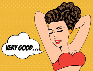 The devil girl is standing in a red dress in heels and with a pitchfork. A child with horns in a Halloween devil costume. Vector illustration isolated on white.