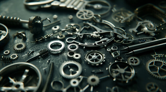 Precision Craftsmanship: A close-up captures the intricate art of watchmaking, showcasing a skilled artisan delicately manipulating tiny gears and components