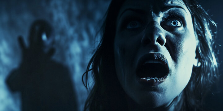 a final girl from a movie has extreme fear in her eyes