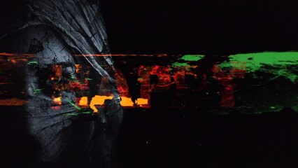 Happy Halloween Horror Glitch 4K Loop features a glitchy and grungy Happy Halloween text with frightening images flickering behind in a loop