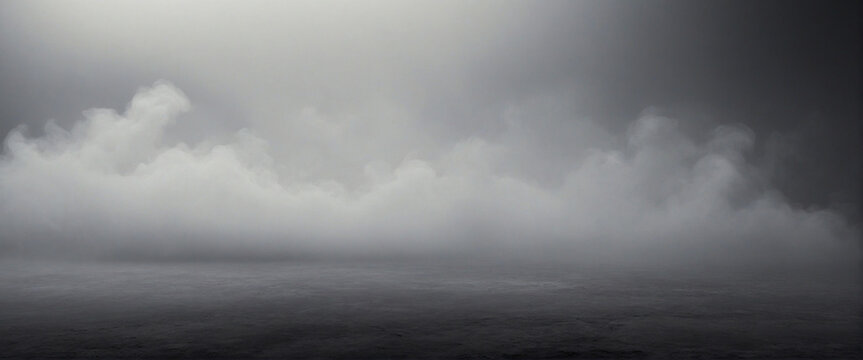 Atmospheric image of a dark, abandoned house surrounded by fog and barren trees, creating a haunting, mysterious mood. Perfect for horror or thriller concepts. AI generated.