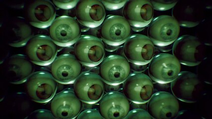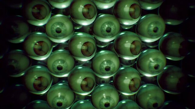 A looping horror themed background of endless wobbly 3D eyeballs.