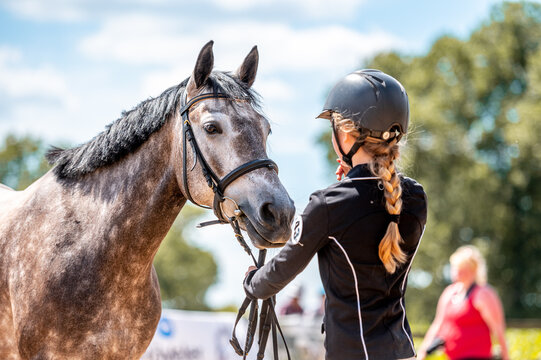 Horse show in hand, portrait of beautiful healthy horse.