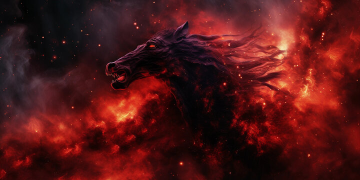 red-violet nebula in outer space, horsehead nebula, unusual colorful nebula in a distant galaxy, red nebula 3d render