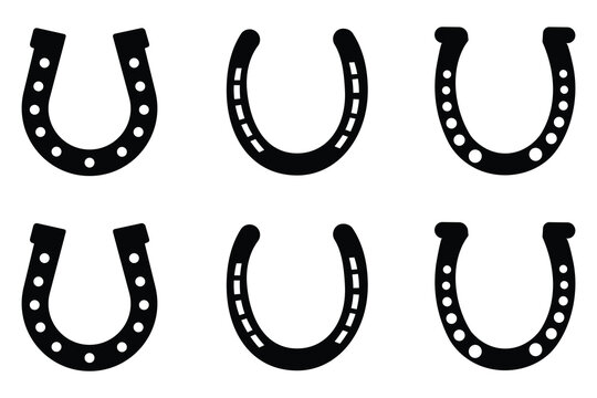 Collection of various black horseshoe silhouettes for luck and equestrian themes