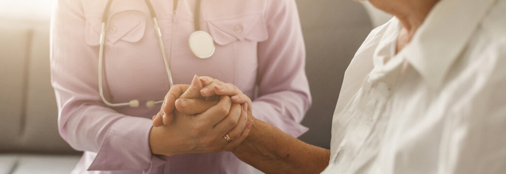 Parkinson disease patient, Alzheimer elderly senior, Arthritis person hand in support of nursing family caregiver care for disability awareness day, National care givers month, ageing society concept