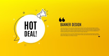 Hot deal. Yellow banner with chat bubble. Special offer price sign. Advertising discounts symbol. Coupon design. Flyer background. Hot offer banner template. Bubble with hot deal text. Vector