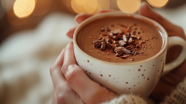 Smiling woman welcoming december with warm clothes and hot cocoa