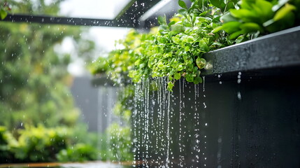 Lush Green Plants Cascading Water Drops Vertical Garden Oasis