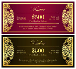 Gift voucher template in elegant ornament design. Sale, promotion, certificate. Vector illustration for spa, wellness, hotel resort