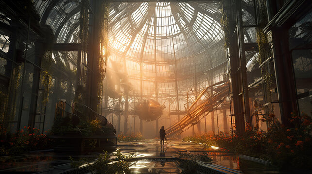 Victorian Spa and wellnes centre in steampunk botanical garden interior illustration design