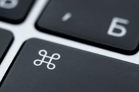 Close-up of a black command key on a keyboard. Function key to control.