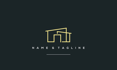 Abstract construction building house geometric logo icon design modern illustration. Minimal real estate property vector sign symbol mark logotype.