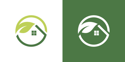 eco building house vector logo design template. green leaf logo with multi-storey building. eco friendly construction logo
