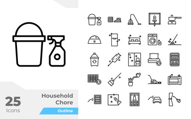 Tidy up icons set outline vector. Furniture room. Clean apartment dirty