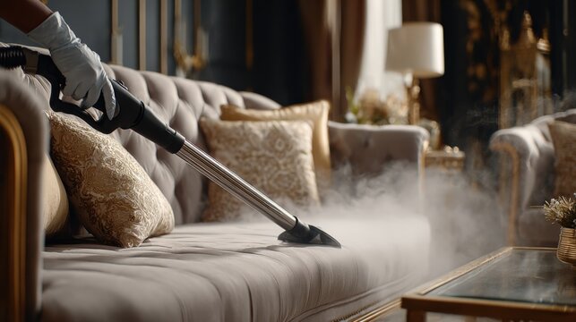 Ultra-Deep Cleaning Sofa with Steam Vacuum Cleaner in Luxurious Living Room Featu Elegant Decor and Soft Pillows