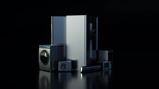 Modern minimalist home appliance store logo. Refrigerator stove and washing machine icon.
